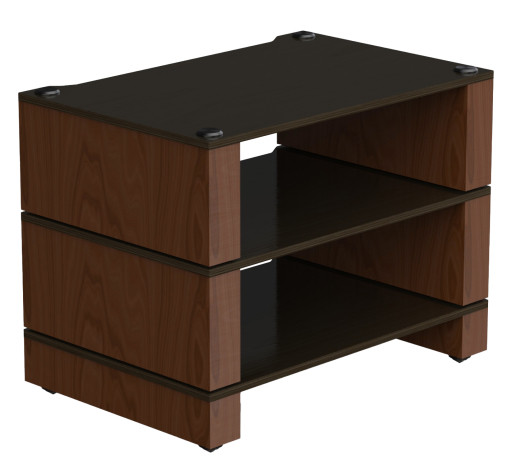 Nagy stabilitású hifi állvány, Méretek: 602 x 475 x 402 mm, Polcok terhelhetősége: 40 kg, Váz anyaga: rétegelt lemez, polc anyaga: rétegelt lemez (13 mm vastag), Lábmagasság: tüske - 22 mm, kemény padló: 14 mm, Base polc magasság: 109 mm, Polc magasság: 170 mm