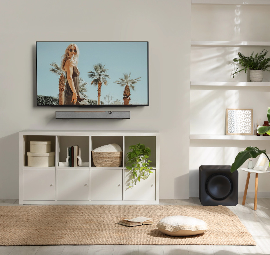 Ez a kicsi, de hatalmas erejű 2.1 csatornás hangprojektor a Klipsch akusztikusai által finoman hangolt két 57 mm-es alumínium középsugárzóval és a két 101 mm-es beépített mélynyomóval a kategóriájában legjobb basszusért. Nincs szükség külön mélysugárzóra.